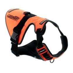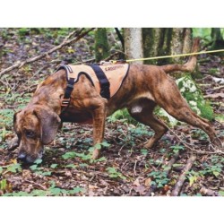 El arnés SIGNAL es un chaleco de señalización para perros de caza. Su color naranja fluorescente permite visualizar al perro y localizarlo en todo momento.