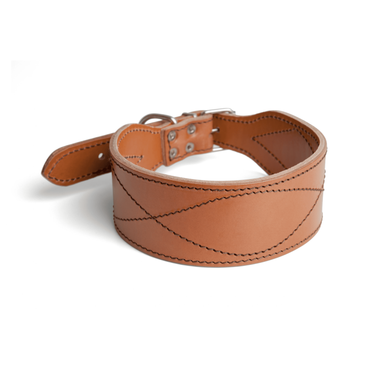 Collar para Perros grande en piel vaquetilla doble capa, de gran calidad y resistencia con adorno cosido. Medida 7 cm de ancho por 75 cm de largo