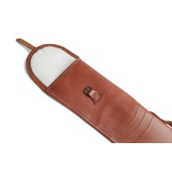 Funda para escopeta semiautomática, en piel vaquetilla coñac de máxima calidad con forro interior. Longitud interior 130 cm.