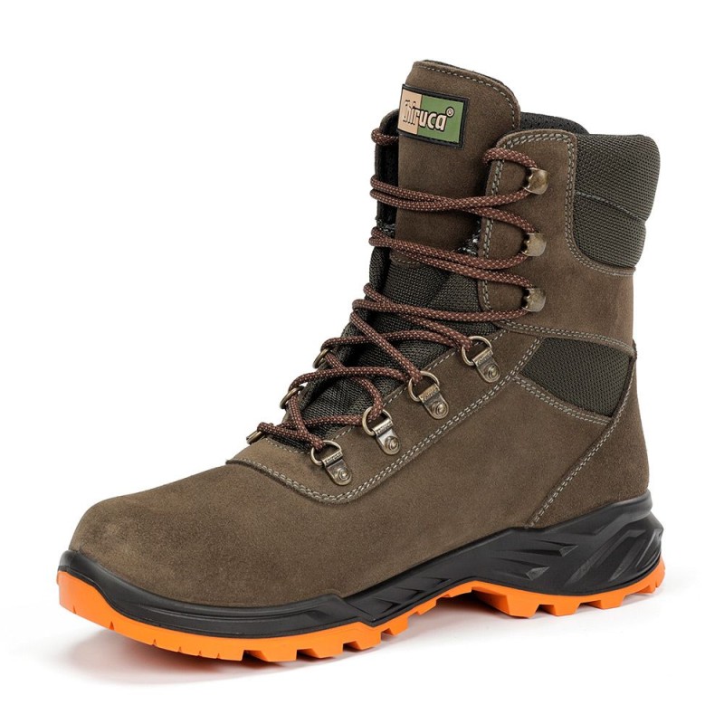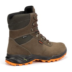Adecuada para todo tipo de terrenos. Bota de piel serraje, , membrana Gore-Tex impermeable y transpirable; con entresuela de poliuretano y patín de caucho Vibram® que proporciona amortiguación y adherencia.