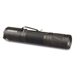 La linterna KONUS RC7 permite regular cómodamente la intensidad de luz girando el dial situado en el botón de encendido en el extremo de la linterna. También dispone de función zoom. Girando el anillo del cabezal se obtiene un haz de luz más concentrado.