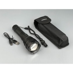 • Linterna recargable con 2500 lumens de potencia en modo 100% y 5000 lumens en modo turbo