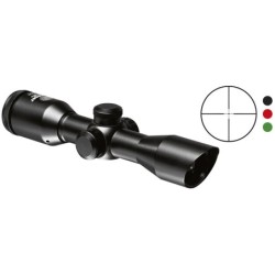 Visor 3-9x40 AO. Longitud 350 mm. Objetivo 40mm. Tubo 1", peso 515 gr. Visor 4x32. Longitud 295 mm, Objetivo 32mm, Tubo 1", peso 290 gr- Visor 4x32 compacto con retícula iluminada. Longitud 230 mm, Objetivo 32 mm, Tubo 1". Peso 210 gr. Punto rojo 1x30. Longitud 95 mm, Objetivo 30 mm, Peso 210 gr.