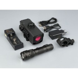 • El visor funciona con una pila recargable 18650 y el iluminador con 2 pilas recargables ICR18350 (ambas incluidas).